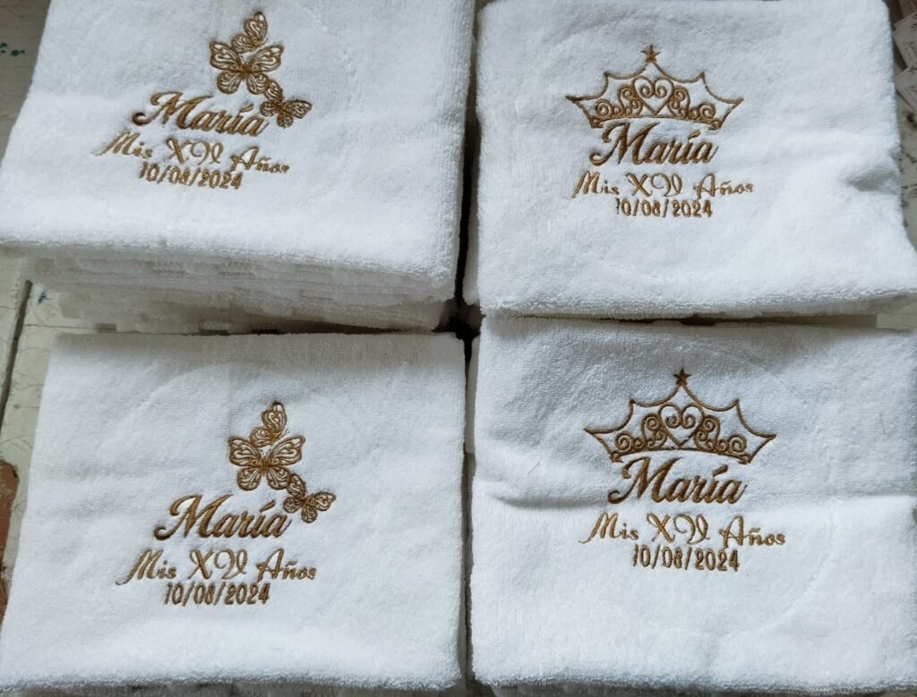 Toallas personalizadas con nombres, logos o iniciales. Ideales para hoteles, spas, eventos o regalos especiales.
