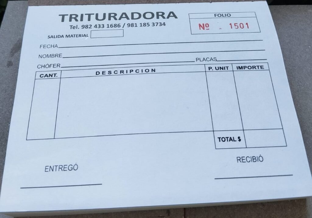 Formatos impresos para ventas, con numeración, logo y datos fiscales. Personalizables según tus necesidades administrativas.